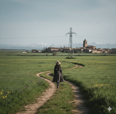De vuelta a casa -la luz de la mañana es preciosa- se me ocurre escribir microrrelatos como este. Me ilusiono. Ni rastro de la emoción que hace menos de una hora me agobiaba. Apunto ideas que me rondan la cabeza desde hace tiempo. ¡Qué bien va a ir! Decido darme una vuelta por el campo. Me doy cuenta de que salgo sin crema solar. Debería ponerme. Pero otra fuerza se interpone y gana la partida. La pereza. Me da pereza desandar 200m. Así que me autoconvenzo de que, como es febrero y de mañana, el sol no pica mucho. Y la incomodidad se va... a la mente se la puede convencer de una cosa y automáticamente de la contraria. El campo, antaño seco, está precioso. Como ha llovido mucho este invierno, está todo verde. Haría una foto... mmm... me molesta la torre eléctrica que sale por el medio. No hay forma de quitarla. Ni a ella ni a los cables. Es fea. Un malestar y un ligero enfado empieza a bullir. Sigo por el camino. En la granja de Pedro hay dos perros nuevos. Dos jovencitos preciosos que me llegan casi a la cintura. Se acercan a la valla esperando mimos. Me agrada acariciarlos. Sin embargo, la perra vieja de siempre no para de ladrar. Me molesta el ruido. ¡Qué incordio!
